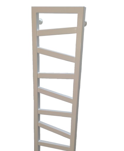 Wąska, klasyczna drabinka ze skośnymi poprzeczkami nada uroku każdej łazience.