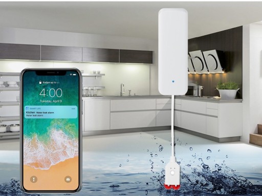 Monitoruj bezpieczeństwo w kontekście wycieku w domu, mieszkaniu, biurze, garażu lub Hali, możliwe jest podłączenie wielu czujników do jednej aplikacji oraz nadanie im własnej nazwy np. Czujnik zalania kuchnia