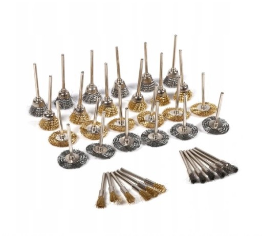 - W zestawie szczotki z drutu miedzianego 18szt i szczotki z drutu stalowego 18szt.
