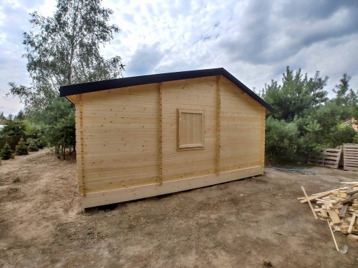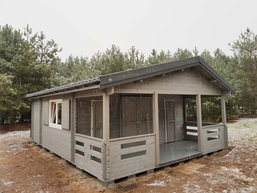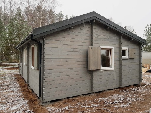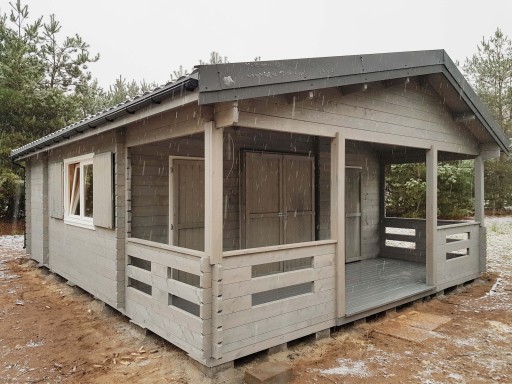 Domek jest zbudowany z bali drewnianych prostokątnych o przekroju 40x150 mm.