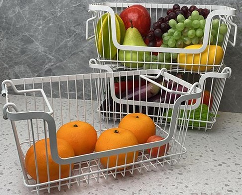 - Koszyki metalowe są proste w utrzymaniu czystości, a także pozwalają na swobodny przepływ powietrza, dzięki czemu owoce zachowują świeżość na dłużej!