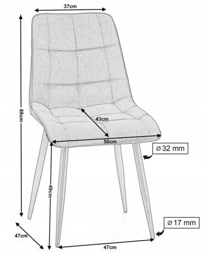 Tapicerka welurowego krzesła zapewnia miękkość, wygodę oraz komfort na wysokim poziomie. Ten wysokogatunkowy materiał genialnie się prezentuje oraz nadaje powierzchni krzesła wyjątkowej gładkości, co sprawia, że siedzenie na nim jest bardzo przyjemne. W krześle zastosowano miękką piankę tapicerską. Dodatkowo oparcie i siedzisko zostało upiększone efektownym pikowaniem, które dodaje uroku. Świetnym uzupełnieniem są metalowe profilowane nogi malowane proszkowo w kolorze czarnym.