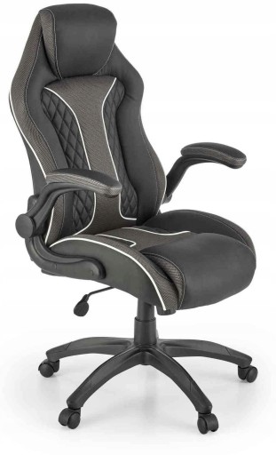 Solidny fotel gabinetowy Hamlet firmy Halmar. Duże wygodne oparcie ze zintegrowanym zagłówkiem umożliwią odnalezienie odpowiedniej pozycji do pracy. Boczne poduszeczki stabilizują postawę. Składane podłokietniki z miękkimi nakładkami. Solidna podstawa jezdna jest wykonana z mocnego tworzywa sztucznego.