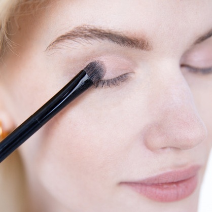 ➡️ za pomocą pędzla nanieś kosmetyk w załamanie powieki