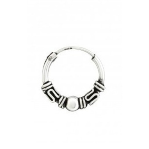 Kolczyk srebrny, oksydowany. Klasyczne kółko z dodatkami w stylu celtyckim - kulką, falami i sprężynkami.