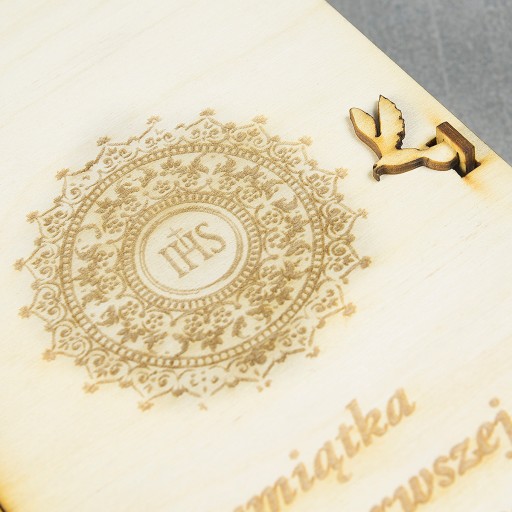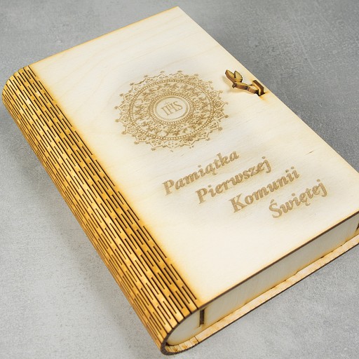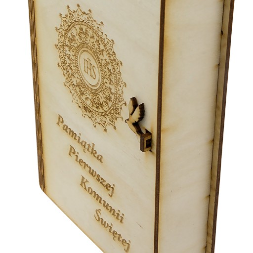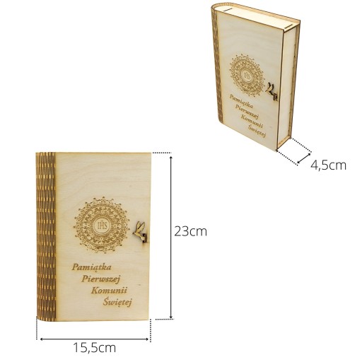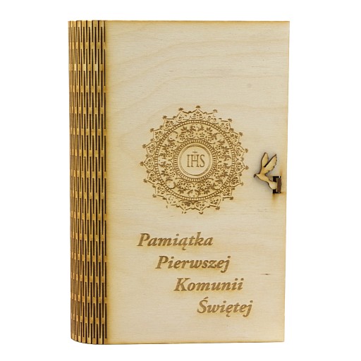 Pudełko jest otwierane na bok, w środku pomieści komunijny upominek czy kopertę.