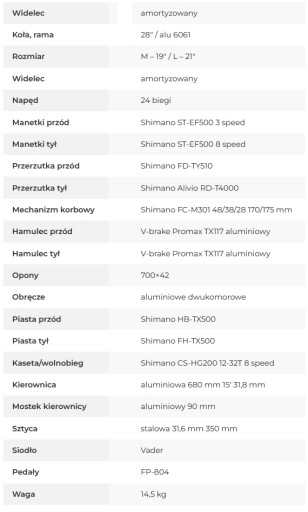 - MECHANIZM KORBOWY Shimano FC-M301, 48/38/28T, 170/175 mm