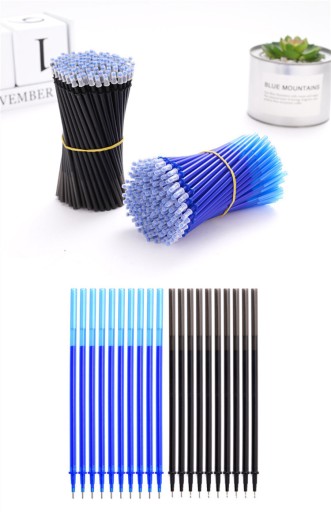Ścieralny wkład wymienny , zamiennik pasujący do ścieralnego pióra kulkowego wypełniony został tuszem, który zasycha błyskawicznie na papierze. Tusz posiada intensywne, nieblaknące kolory. Napisany tekst takim wkładem można dowolnie gumkować i poprawiać. kolor: niebieski W zestawie: 100 szt wkładów