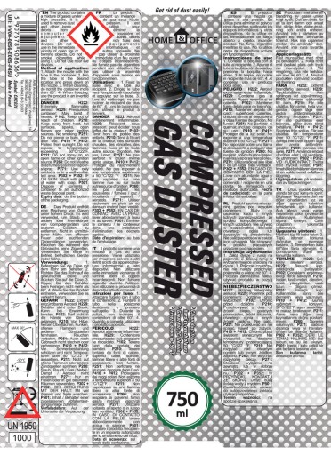 Produkt jest mieszaniną gazów pod wysokim ciśnieniem. Służy do usuwania kurzu i innych luźnych zanieczyszczeń ze sprzętu komputerowego, RTV, AGD i innych urządzeń. Nie wstrząsać pojemnikiem bezpośrednio przed użyciem.