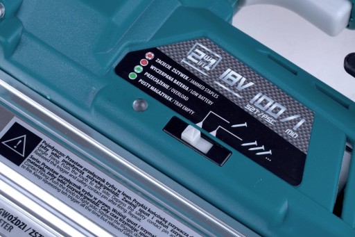 Narzędzie przeznaczone do łączenia różnych elementów za pomocą zszywek lub gwoździ. Znajdzie zastosowanie podczas majsterkowania, tapicerowania czy wykonywania prac dekarskich. Za pomocą wygodnego pokrętła dostosujemy siłę wbijania zszywek i gwoździ. Magazynek pomieści 100 sztuk zszywek. Oświetlenie LED z dwóch diód zapewnia zwiększony komfort pracy w miejscach niedoświetlonych. Urządzenie wyposażone jest w zabezpieczenie przed przypadkowym uruchomieniem. Wbudowany kompresor eliminuje konieczność podłączenia zewnętrznego źródła sprężonego powietrza. Zszywacz akumulatorowy pneumatyczny pozwala na wbijanie zszywek lub gwoździ w trybie pojedynczym lub seryjnym. Boczny panel sygnalizujący : pusty zasobnik, przeciążenie urządzenia, zacięcie gwoździ/zszywek oraz niski poziom baterii.
