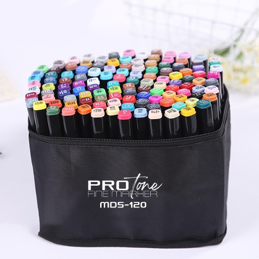 Zestaw 120 markerów ProTONE w nasyconych, różnorodnych barwach to propozycja dla wszystkich, którzy rozpoczynają swoją przygodę z rysunkiem oraz dla tych, którzy rysują na co dzień. Doskonała pigmentacja alkoholowego tuszu zawartego w pisakach gwarantuje, że wykonane nimi rysunki będą nasycone, wyraźne i długo nie zblakną.