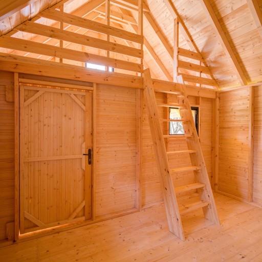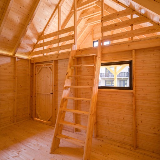 - szkielet całego domku (podłoga, ściany, dach) jest przygotowany pod ocieplenie wełną o grubości 10cm,