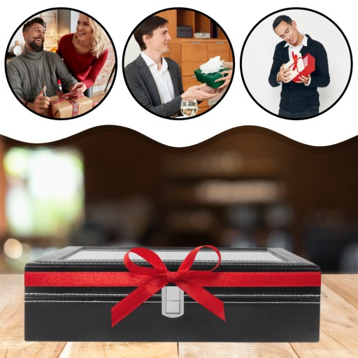 ✅ Posiada szklane okienko, które umożliwia podziwianie zegarków i okularów bez potrzeby otwierania etui.