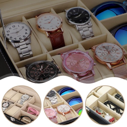 ✅ Wnętrze jest wyłożone mięciutkim, kremowym materiałem, który chroni zegarki i okulary przed zarysowaniami i uszkodzeniami.