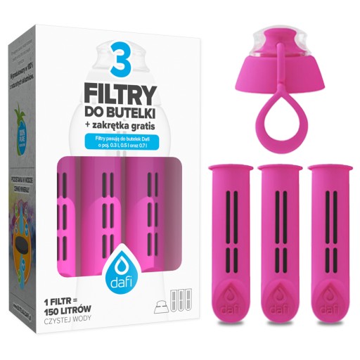 Różowa Butelka filtrująca do wody kranowej DAFI SOLID 0,7L + 4 filtry