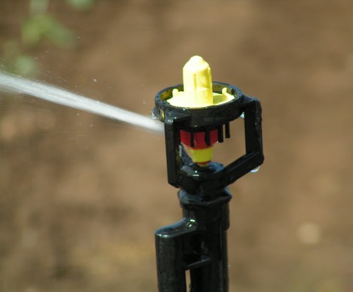 Разбрызгиватель GOLD RAIN, радиус действия 400 л/ч, радиус действия 10 м. Пахотные поля площадью несколько гектаров.