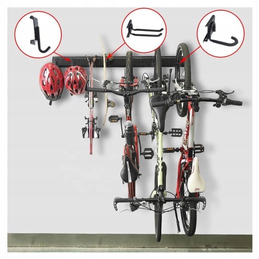 ▶️Organizer to usadowiony na szynie system haków na które można zawiesić akcesoria lub sprzęt sportowy jak na zdjęciu, lub gospodarczy taki jak łopaty, grabie, dmuchawy do liści, przycinarek do chwastów, czy innych narzędzi ogrodniczych.