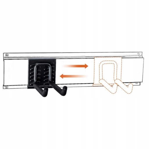 ▶️System jest regulowany za czym możemy dowolnie konfigurować ułożenie wieszaków na szynie przesuwając je w dowolną stronę, odpinając i przypinając w dowolnym momencie w zależności od potrzeb.