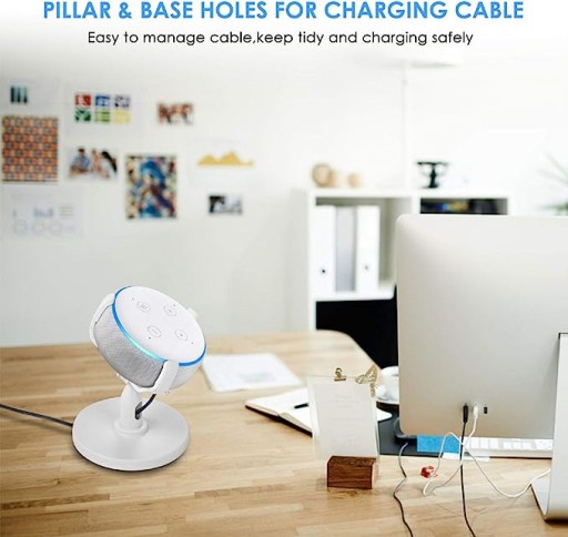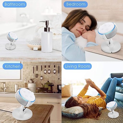 - Uchwyt dla Dot – specjalnie zaprojektowany dla Echo Dot 3. generacji (urządzenie nie jest dołączone) TYLKO ze stabilnym uchwytem stołowym dla idealnego dopasowania.