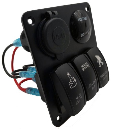 Панель переключателей 3 вольтметра Carling USB алюминий.