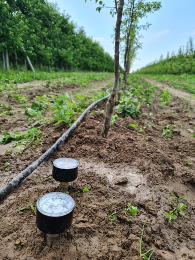 ✅Wystawiony tensjometr mierz wilgotność gleby na głębokości 30 cm.