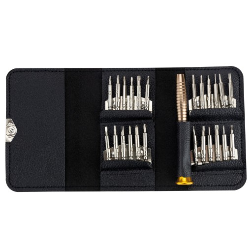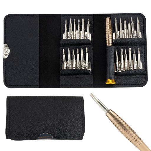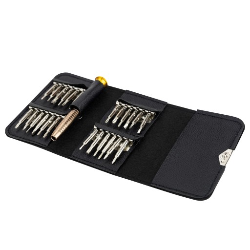 Całość zapakowana w eleganckie, kieszonkowe etui zamykane na klips. Doskonale sprawdzi się do prac naprawczych małych urządzeń elektronicznych w tym: telefonów, laptopów, tabletów, kamer, aparatów, nawigacji, AGD.