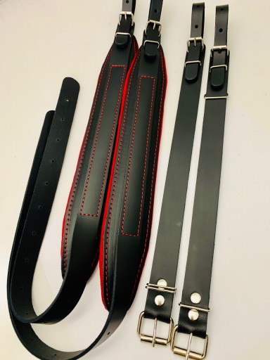 Pasy do akordeonu 80-120 basów- model REGULAR. Wykonane w 100% ze skóry bydlęcej z miękka poduszką piankową obita materiałem (welurem) w różnych kolorach. Wytrzymałe okucia metalowe z Polski. Wygodne, z dużą możliwością regulacji