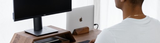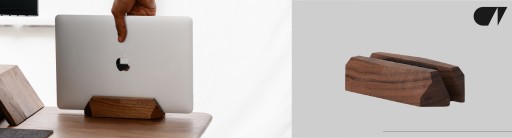 Stojak Laptop Dock wyróżnia się unikalnym, minimalistycznym designem i wysoką jakością. Drewniane elementy połączone podstawą ze stali nierdzewnej zapewniają solidny i bezpieczny uchwyt urządzeniom.