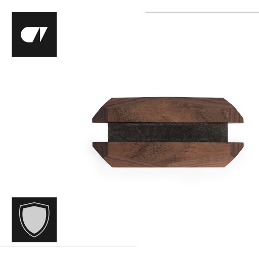 - Materiał: lite drewno orzechowe (z USA) / stal nierdzewna / filc z wełny merynosa (z Niemiec / mulesing free / certyfikat 100 Oeko-Tex) / flok