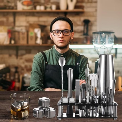 Jest to wysokiej jakości zestaw koktajlowy zawierający 25 różne narzędzia, wszystkie wykonane ze stali nierdzewnej, czyste, nie wymagające użycia narzędzi, koktajl bar wykonany przez profesjonalnych barmanów, odporny na wchłanianie i odbarwianie oraz trwały. Idealny prezent zarówno dla początkujących, jak i profesjonalistów, ponieważ zawiera wszystkie niezbędne elementy. Możesz to sprawdzić.