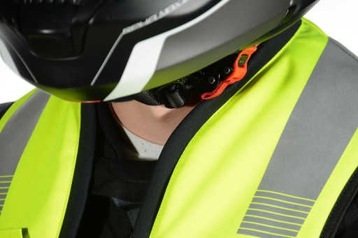 - Sprawdzony system wielokierunkowego wyzwalania, zapewniający bezpieczne uwolnienie motocyklisty i inflację poduszek powietrznych w trakcie wypadku.
