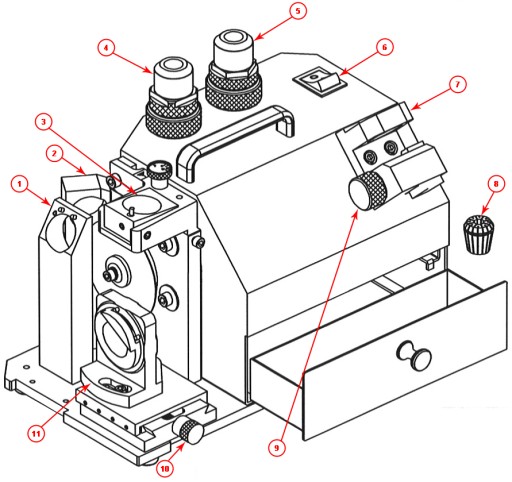 Szlifierka do ostrzenia frezów walcowo-czołowych o 2, 3, 4, 6 ostrzach o średnicy 12-30 mm, z tarczą diamentową, umożliwiająca precyzyjne szlifowanie i łatwą obsługę.