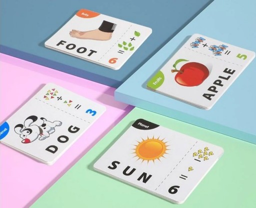 - Karty są dwustronne - zawierają zarówno zagadki obrazkowe do odgadnięcia nazwy przedmiotu ale i zagadkę matematyczną.