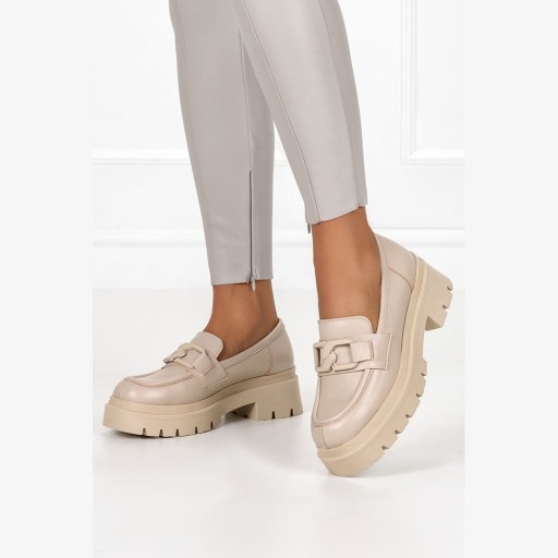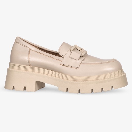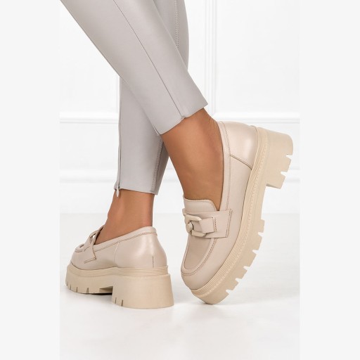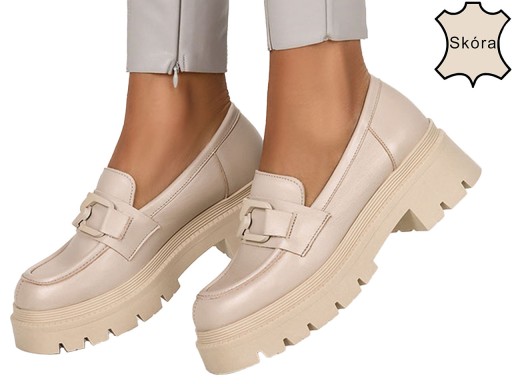 - piękne beżowe mokasyny wykonane z najwyższej jakości skór naturalnych