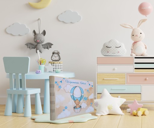 Na kartach albumu pozostawiłyśmy wolne miejsca, w których rodzice dziecka będą mogli sukcesywnie uzupełniać informacje dotyczące rozwoju ich dziecka i upamiętniać zdjęciami najważniejsze chwile w życiu maluszka.