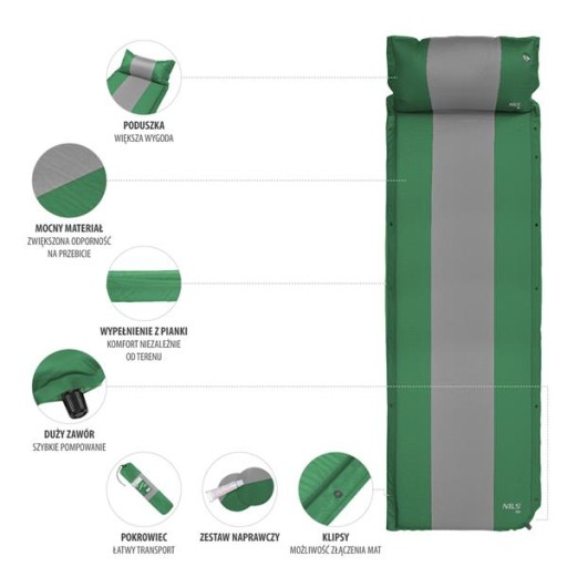 NC4349 CIEMNOZIELONA MATA SAMOPOMPUJĄCA Z PODUSZKĄ NILS CAMP