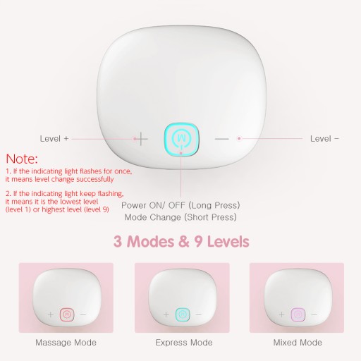 All-in-one device. 3 modes (massage, express, mixed), each mode has 9 levels adjustable, choose the most comfortable level.