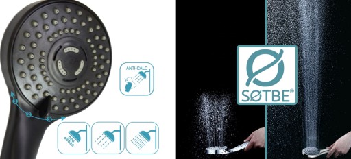 z wielofunkcyjną słuchawką prysznicową z systemem przeciwdziałającym tworzeniu się osadów wapiennych ANTI-CALC.