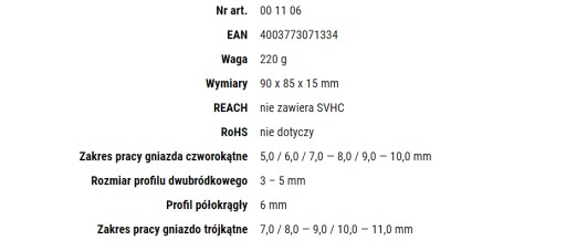 - 9 różnych profili odlewanych ciśnieniowo ze stopu cynku w jednym kluczu