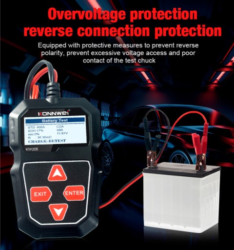Tester KW208 to niezastąpione narzędzie dla mechaników i użytkowników samochodów. Urządzenie pomaga utrzymać akumulator w optymalnym stanie i uniknąć potencjalnych problemów.KONNWEI KW208 to tester akumulatorów samochodowych 12 V, który skutecznie analizuje i odczytuje kluczowe dane takie jak napięcie, opór wewnętrzny, prąd zimnego rozruchu (CCA) i pojemność AH. Precyzyjne wyniki i obliczenia ułatwiają kontrolę kondycji i poziomu naładowania akumulatora, a także umożliwiają szybsze i bardziej precyzyjne naprawy.