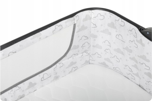 Łóżeczko z odpiętą ścianką może służyć jako dostawka, a po podniesieniu ścianki - jako wolnostojące łóżeczko. Przewiewna siatka po obu stronach zapewnia odpowiednią cyrkulację powietrza oraz pozwala na obserwację dziecka.