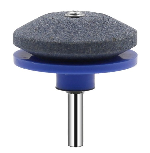 Kompaktowa, przenośna ostrzałka do noży w kosiarkach i kosach. Tarcza wykonana z wytrzymałego tworzywa została osadzona na stalowym trzpieniu o średnicy 6 mm. Przemyślana konstrukcja (odpowiednio wyprofilowana tarcza) umożliwia szybkie naostrzenie noży kosiarek bez konieczności ich demontażu. Kompatybilna z większością wiertarek i wkrętarek ze złączem 1/4'' (6,35 mm).