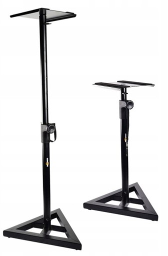 STAND4ME MON 1 to solidny, profesjonalny statyw pod monitory studyjne. Stojak w całości wykonany został ze stali pomalowanej proszkowo na kolor czarny. Dolna podstawa ma kształt trójkąta równobocznego. Posiada dokręcane, antypoślizgowe nóżki umożliwiające wypoziomowanie całego statywu. W zestawie znajdują się także kolce, które świetnie sprawdzają się na wykładzinowych powierzchniach. Górna podstawa pod odsłuch ma kształt kwadratu. Dwa doklejane do niej antypoślizgowe pasy eliminują wszelkie drgania rezonansowe powstające podczas pracy głośnika i skutecznie utrzymują kolumnę na miejscu. Stojak, oprócz poziomu minimalnego, posiada pięciopunktową regulację wysokości. Rozsuwa się na maksymalną wysokość 116 cm, a trzpieniowe zabezpieczenie sprawia, że jest w stanie utrzymać nawet cięższe kolumny. Dodatkowo sztyca wyposażona została w dwa zaczepy umożliwiające wygodne i estetyczne poprowadzenie w nich przewodów. Wszystko to sprawia, że statyw pod odsłuchy MON 1 to wygodna, przemyślana i solidna konstrukcja, która doskonale sprawdza się w profesjonalnym oraz domowym studio nagrań. Specyfikacja techniczna: Materiał: stal malowana proszkowo Kolor: czarny Wys. min.: 67 cm Wys. maks.: 116 cm Wymiary podstawy monitora: 23 x 23 cm Wymiary dolnej podstawy: 43 x 43 x 43 cm Regulacja wysokości: pięciopunktowa Zabezpieczenie przed osunięciem: dociskowe + pinowe Waga: 3,4 kg