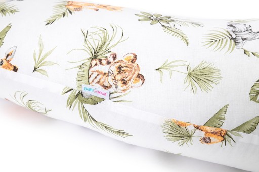 Duże rozmiary poduszki (160cm długości) pozwalają mamie w czasie ciąży komfortowo odpoczywać w ciągu dnia i zrelaksować się poprzez wsparcie całego ciała. Podczas snu duża poduszka pomaga w znalezieniu wygodnej pozycji, dzięki czemu ułatwia zdrowy sen. Odciążając plecy, ramiona oraz szyję kobiety, łagodzi wysiłek, ułatwia spanie. Umieszczenie jej między kolanami ułatwia odciążenie stawu biodrowego.