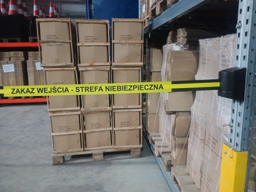 - Zestaw zawiera kasetę naścienną z taśmą odgradzającą