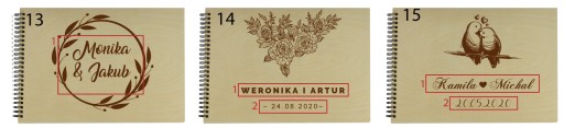 Pięknie grawerowana okładka z nietypowego materiału wyróżnia album na tle tradycyjnych propozycji. Naturalny charakter drewna pasuje do każdego wnętrza dzięki czemu oprócz sentymentalnej pamiątki stanowi element dekoracyjny.