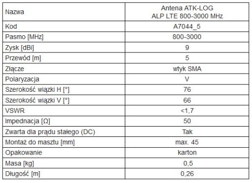 ANTENA LOGARYTMICZNA ATK-ALP/LTE+SMA/5 GSM/DCS/UMT