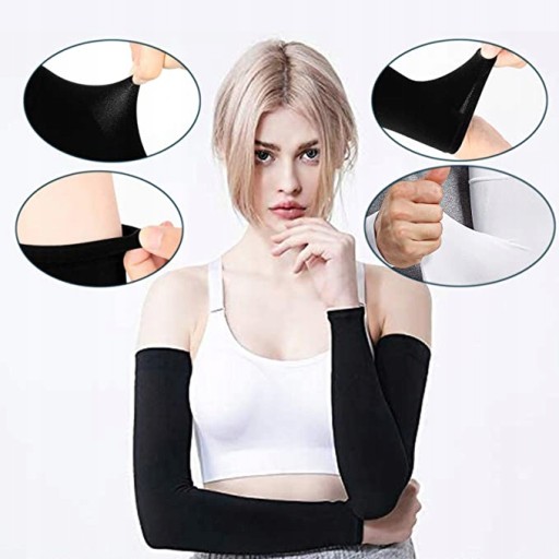 RĘKAWY CHŁODZĄCE RĘCE 2 PARA RĘKAWÓW BIAŁY CZARNY ☀️PRZECIWSŁONECZNA ☀️ANTY-UV ☀️ODDYCHAJĄCY ? Materiał: ☀️ Wysokiej jakości miękka tkanina poliestrowa, duża elastyczność, miękka i jedwabista, nie ciasna, blokująca słońce, lekka, elastyczna siateczka, odprowadzająca wilgoć, oddychająca, chłodna i oddychająca. 🧗 Ochrona: ☀️ Ramię również potrzebuje osłony ochronnej, a rękawy przedramienia rozciągają się od nadgarstka do ramienia, aby były odporne na światło słoneczne, a nie na opalanie. Są trwałe, utrzymują ręce w chłodzie i są bardzo wygodne w noszeniu.
