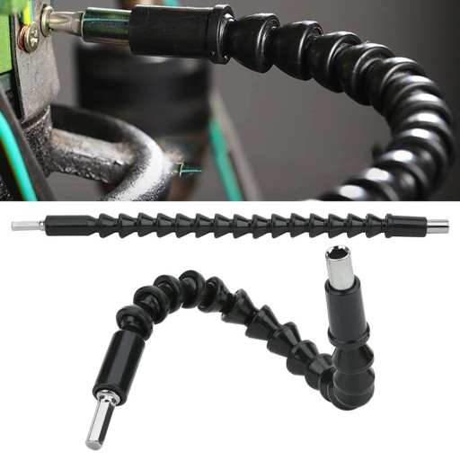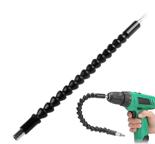 Chcesz przewiercić śrubę w miejscu, pod którym nie zmieści się wiertarka? Po prostu wygnij przedłużacz i przyłóż ją do jednego z jego końców. Gdy końcówka przedłużacza kręci się, pobudza do ruchu sprężyny, co umożliwia skręcenie śruby. Wykonany z solidnego plastiku, dzięki czemu posłuży ci na długo nawet po wielokrotnym zaginaniu. Dodaj funkcjonalności swojej wiertarce!