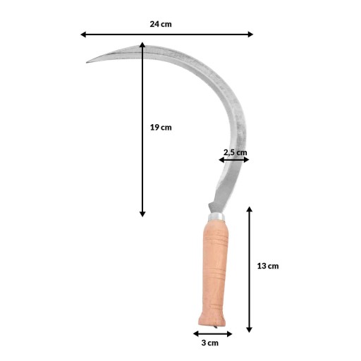 ✅ Wielofunkcyjność: Sierp może być używany w różnych pracach rolniczych i ogrodniczych. Służy do zbioru zbóż, traw, ziół czy kwiatów, a także do przycinania gałęzi, chwastów czy innych roślinnych elementów.
